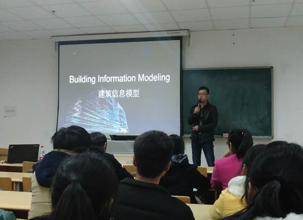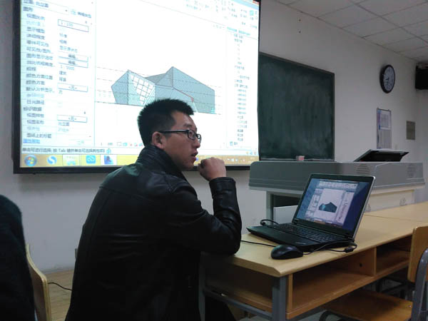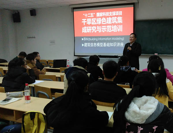 2015年12月2日晚在L楼408教室举行了“让你的设计更精彩——BIM建筑信息模型”讲座,同时作为国家十二五科技支撑项目干旱区绿色建筑技术集成研究与示范的一次培训。讲座由区建筑设计院赵志龙建筑师(Autodesk Revit 认证工程师)主讲,课题负责人贺生云老师就绿色建筑和BIM做了简短的开场讲话。
