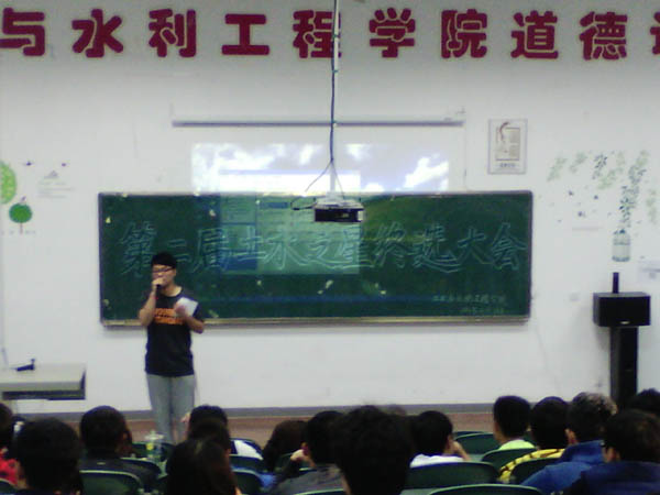 2014年4月28日下午,AG亚游官网 学生代表们于工科楼第三阶梯教室参加由AG亚游官网 文艺部及外联部主办的“第二届土水之星终选大会”。此次大会由院学生会文艺部部长姚欢主持,校学生会代表参加了此次活动。