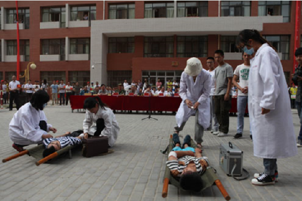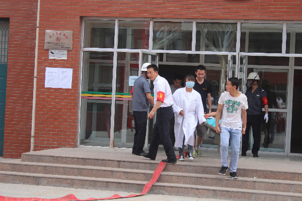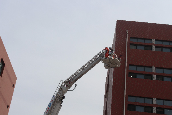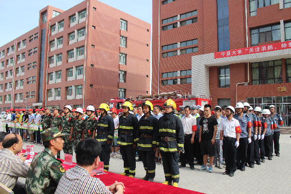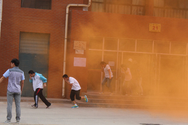 浓烟弥漫在C区21号楼,一群群学生有序、快速的从各安全通道紧急疏散……2014年5月28日下午3时,由AG亚游官网 保卫处主办、AG亚游官网 承办的AG亚游官网 “关注消防,珍爱生命”消防演练活动隆重举行。莅临此次活动的嘉宾有AG亚游官网 党委书记齐岳,党委副书记赵利宁、王燕昌,副校长谢应忠,AG亚游官网 副校级调研员AG亚游官网 院长田军仓,西夏区消防大队怀远中队队长及各AG亚游官网 领导及AG亚游官网 全体大一学生参加了此次演练。