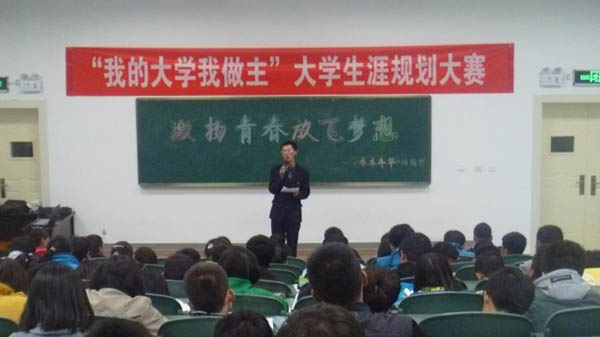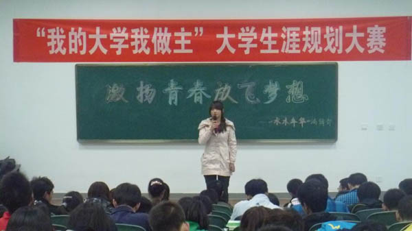 在工科楼第三阶梯教室举办了以“激扬青春放飞梦想”为主题的大学生生涯规划大赛。09级年级主任张文博老师,12级辅导员马姣老师出席了本次大赛。
