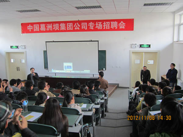 招聘会上,中国葛洲坝集团公司人力资源部副部长李威先生对公司的基本情况进行了介绍,就 “真诚、共赢、稳定”的企业历史文化和福利待遇等做了详尽的阐述。随后,广大毕业生投递了简历,并分别组织了笔试和面试。涉及的招聘岗位包括AG亚游官网