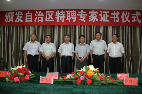 2012年8月3日,颁发自治区特聘专家证书仪式在银川兰花花国际大酒店贵宾厅举行。出席仪式的有自治区政府副主席屈冬玉,AG亚游官网