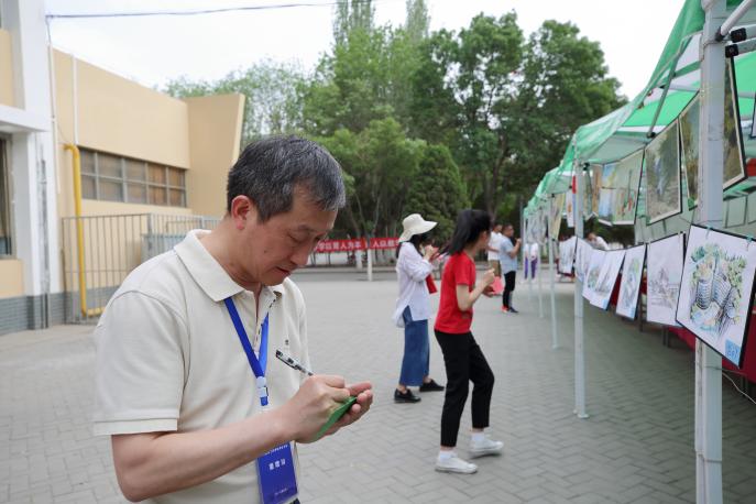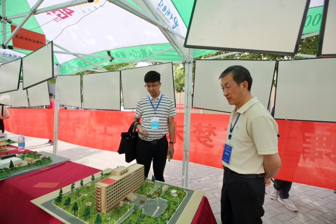 举办的“指尖圆梦,筑梦未来”优秀作品展览会,并亲自为作品进行评审打分。