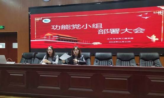 在知行楼三阶报告厅举行功能党小组部署大会。党委副书记柳松洁、辅导员王娜出席会议。
