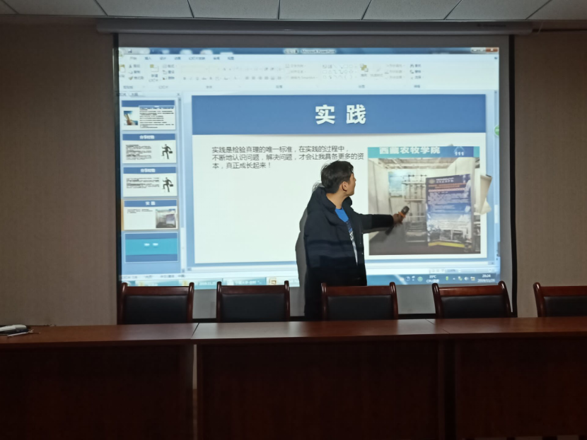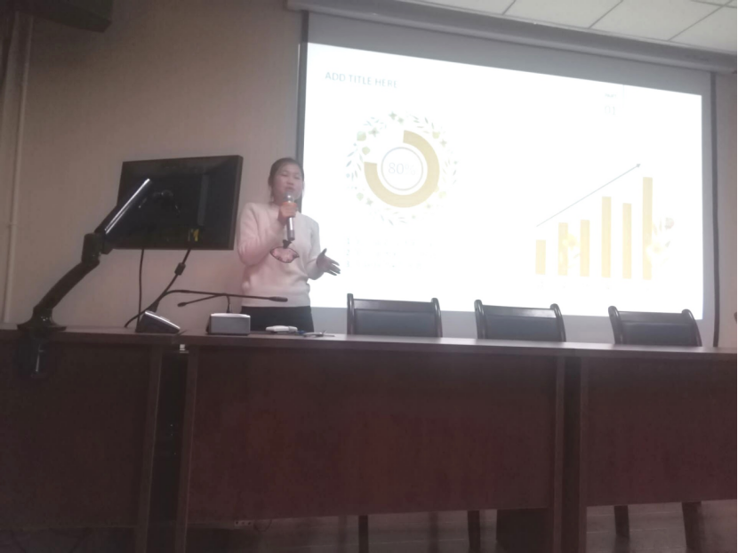 郑娇梦同学结合自身经历向同学们分享了她大一到大三这个期间参加大创比赛经历,同时,她就大创的参赛流程给大家做了详细介绍,并给大家介绍了互联网+和三下乡的一些相关知识。