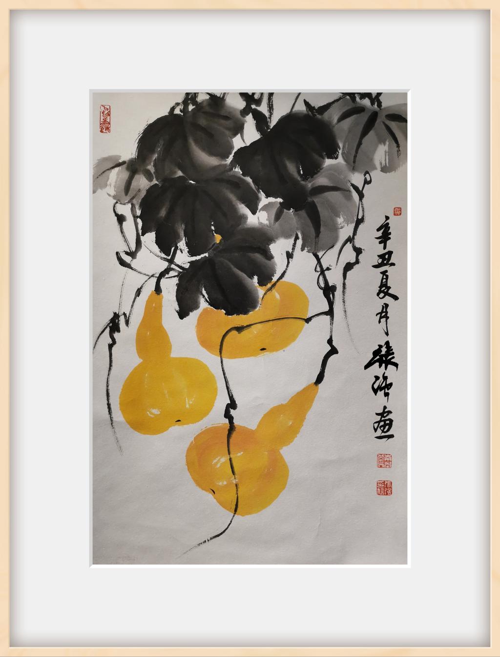 这幅名为《福临门》的作品,色调明快、栩栩如生、寓意丰满。金黄色的硕果展现了中华大地一派欣欣向荣的景色,象征着中国共产党在100年波澜壮阔的历史征程中取得的光辉成就,也预示着中华民族的光明前景和美好未来。