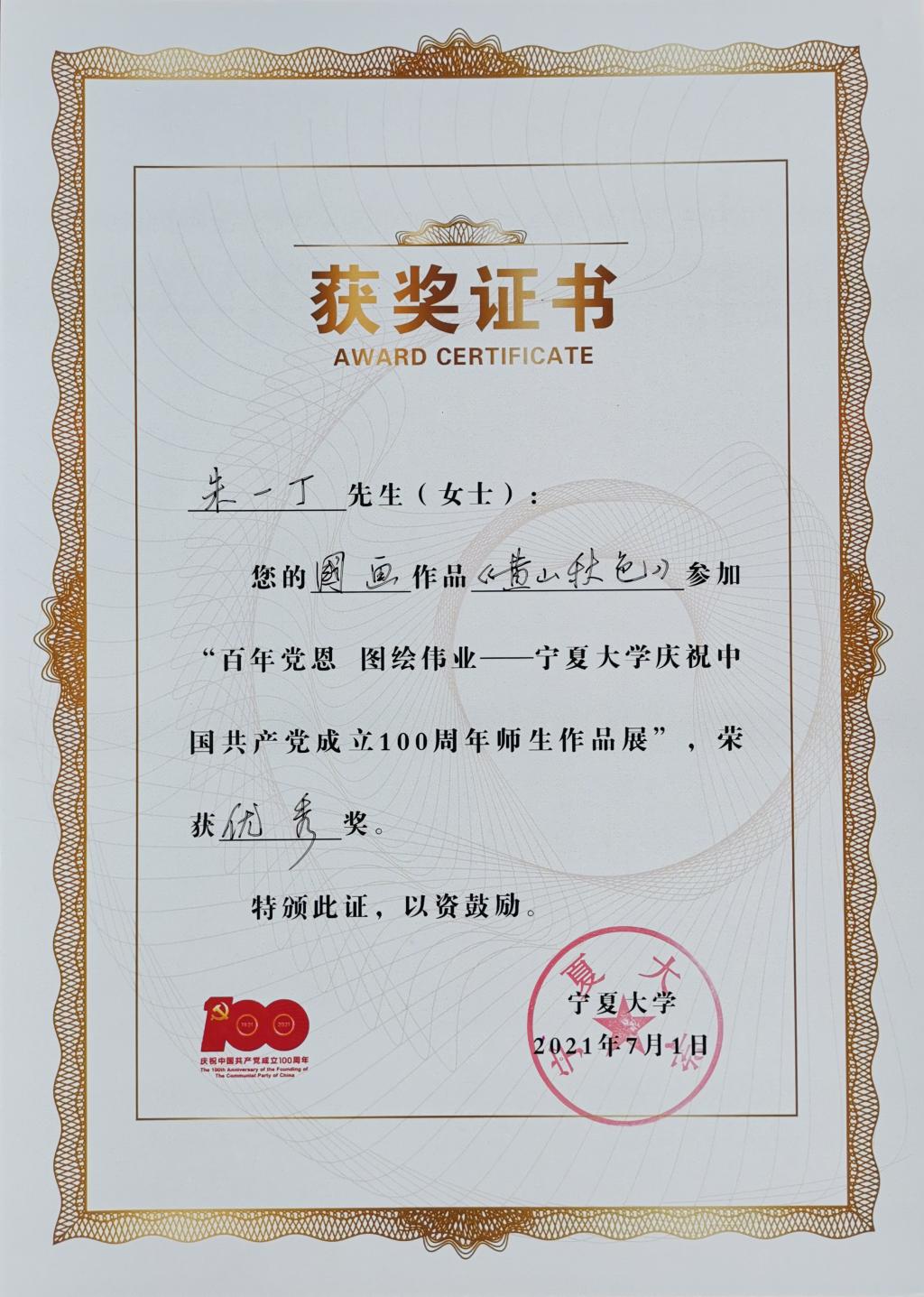 庆祝中国共产党成立100周年师生作品展”优秀奖