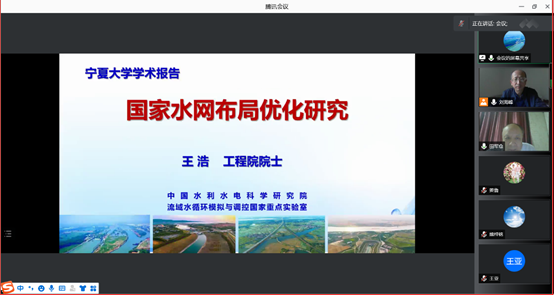 邀请中国工程院王浩院士做了题为《国家水网布局优化研究》的线上学术报告,全院师生300余人参加了报告会,报告会由副院长刘海峰主持。