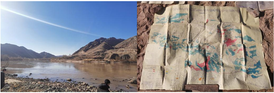 首先前往第一站是在黑山峡出口,位于甘肃与宁夏交界的峡谷地区,连接甘肃、宁夏两省区,全长约71公里,是黄河上游最后的峡谷,也是黄河上游河段中最后一个尚未开发的较长的河段,蕴藏着丰富的水力资源。大柳树坝址下游的冰沟,冰沟是位于宁夏中卫市大柳树河段的一个大型冲沟,地质条件多为寒武纪变质岩、泥盆纪粉砂岩及淡红色的砂砾岩、石炭纪页岩粉砂岩等构成。通过实地观摩,使同学们了解了各种地质构造如节理、裂隙以及断层、褶皱等各类工程地质现象。此外,同学们还掌握了地质罗盘的用法,动手实测了岩层的走向、倾向、倾角。