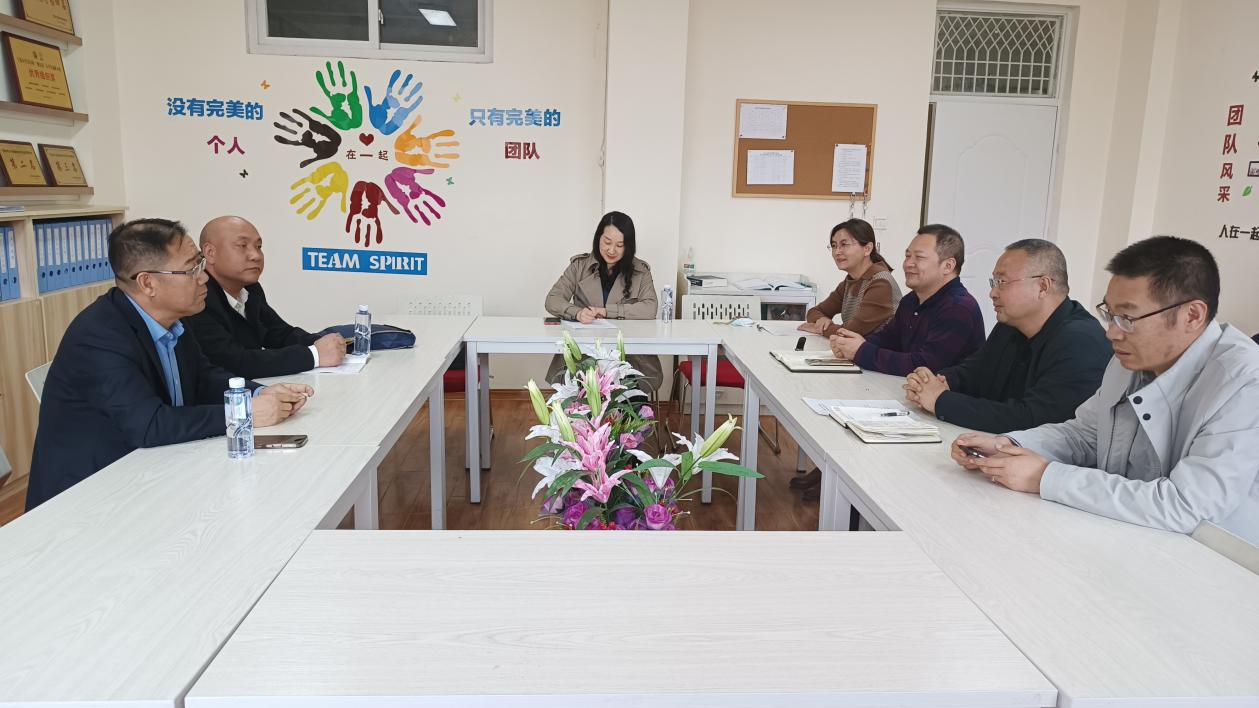 领导与中昊银晨公司领导亲切座谈。双方就校企合作、课题申报、就业实习等多方面进行了深入探讨,对未来双方合作的具体事宜进行了初步规划。