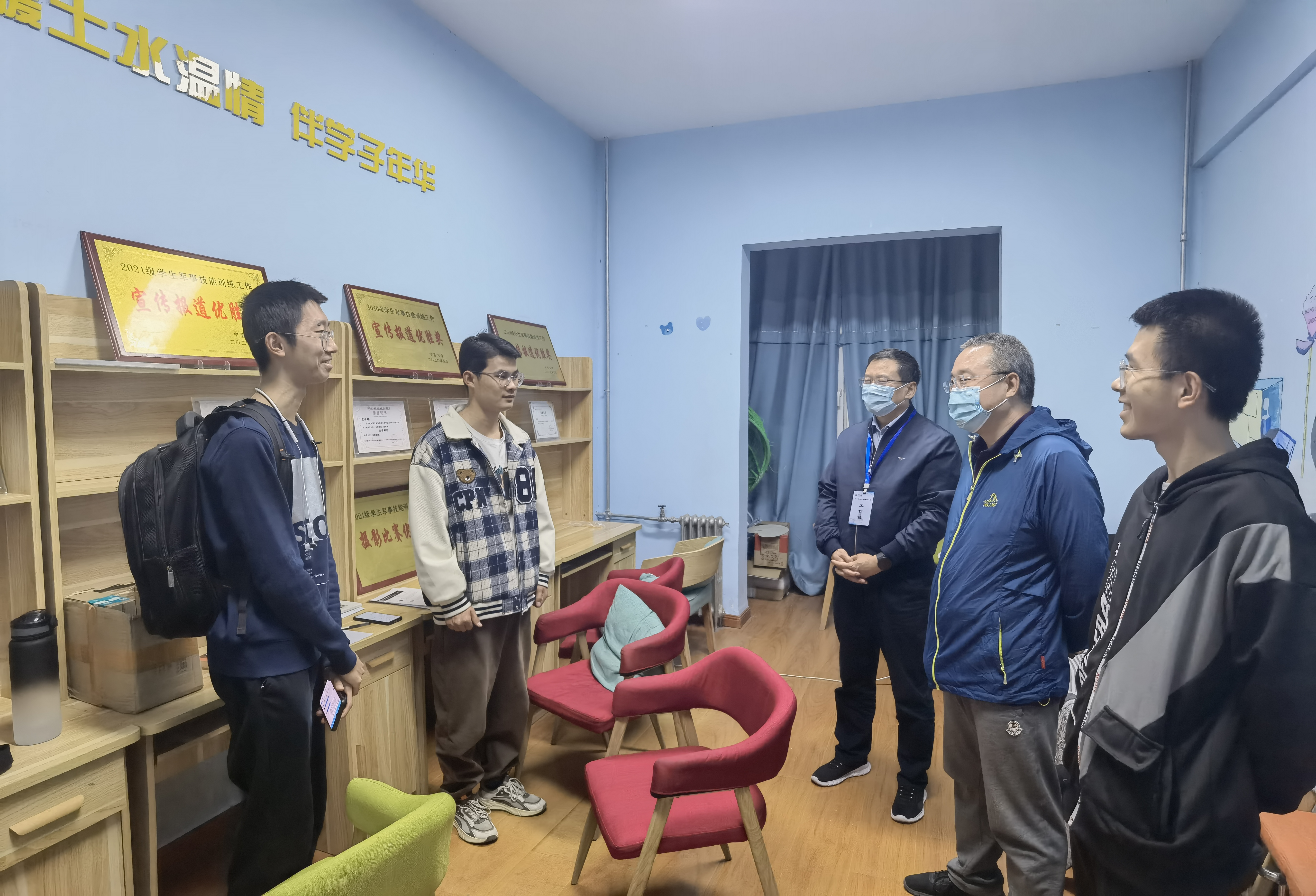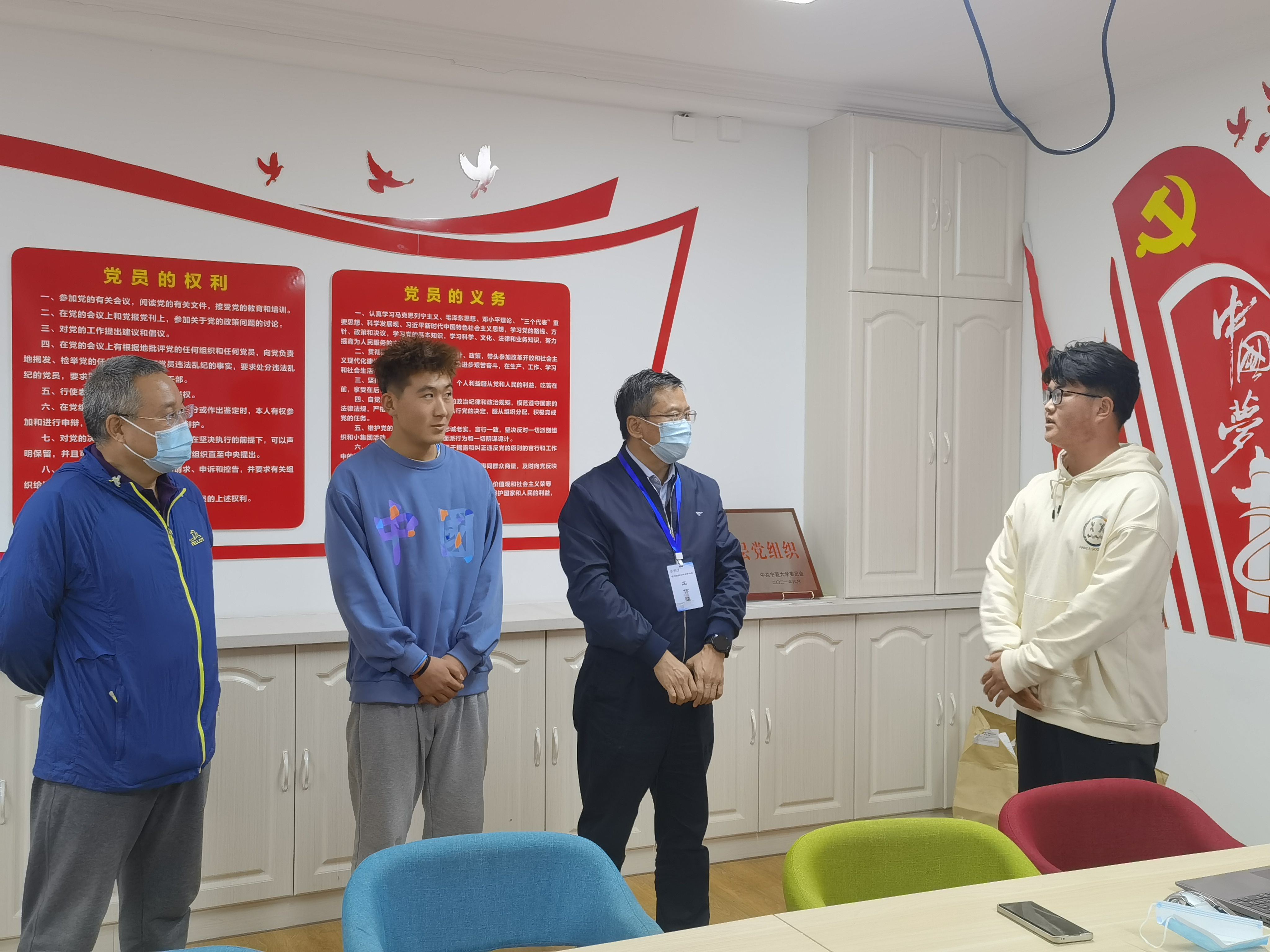 协调解决的事宜,鼓励同学们要走下网络、走出寝室、走向操场,积极参加各类有益身心的集体活动。同时,高度关心疫情期间学生的思想状态,交谈中鼓励同学们积极向党组织靠拢,交流现场氛围融洽。