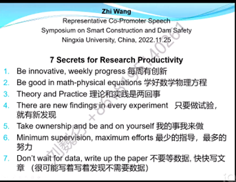 美国加利福尼亚州立大学FRESNO分校王智教授作为产学研用国际合作中外联合导师代表致辞。他分享了自己关于水利工程科研与工作的感想和心得,同时,期待通过产学沿用研讨会搭建的桥梁,双方师生能够在科学研究和人才培养方面实现双赢。