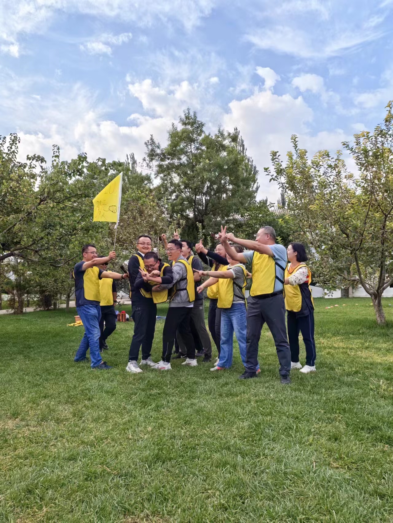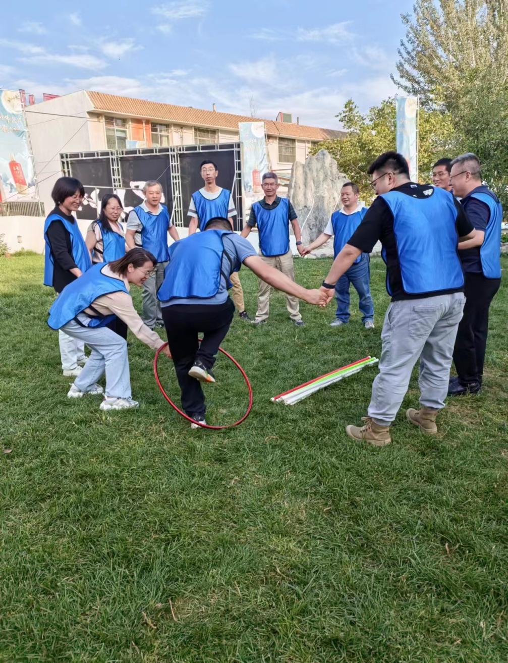 随后,大家前往了团建的活动场地。所有干部职工被团建教官分成了三队,并分别自命名为“110先(遥遥领先队)”队,“无畏”队与“什么都对”,还进行了十足前行、绳结写字、拓展训练等一系列项目的比拼。活动在一个个精彩的团队拓展游戏中和不断爆发出的阵阵欢声笑语之中渐入尾声,每个小组、每位老师都是全身心地投入,并在团结协作中努力完成每项比赛,最终“无畏队”夺得冠军。
