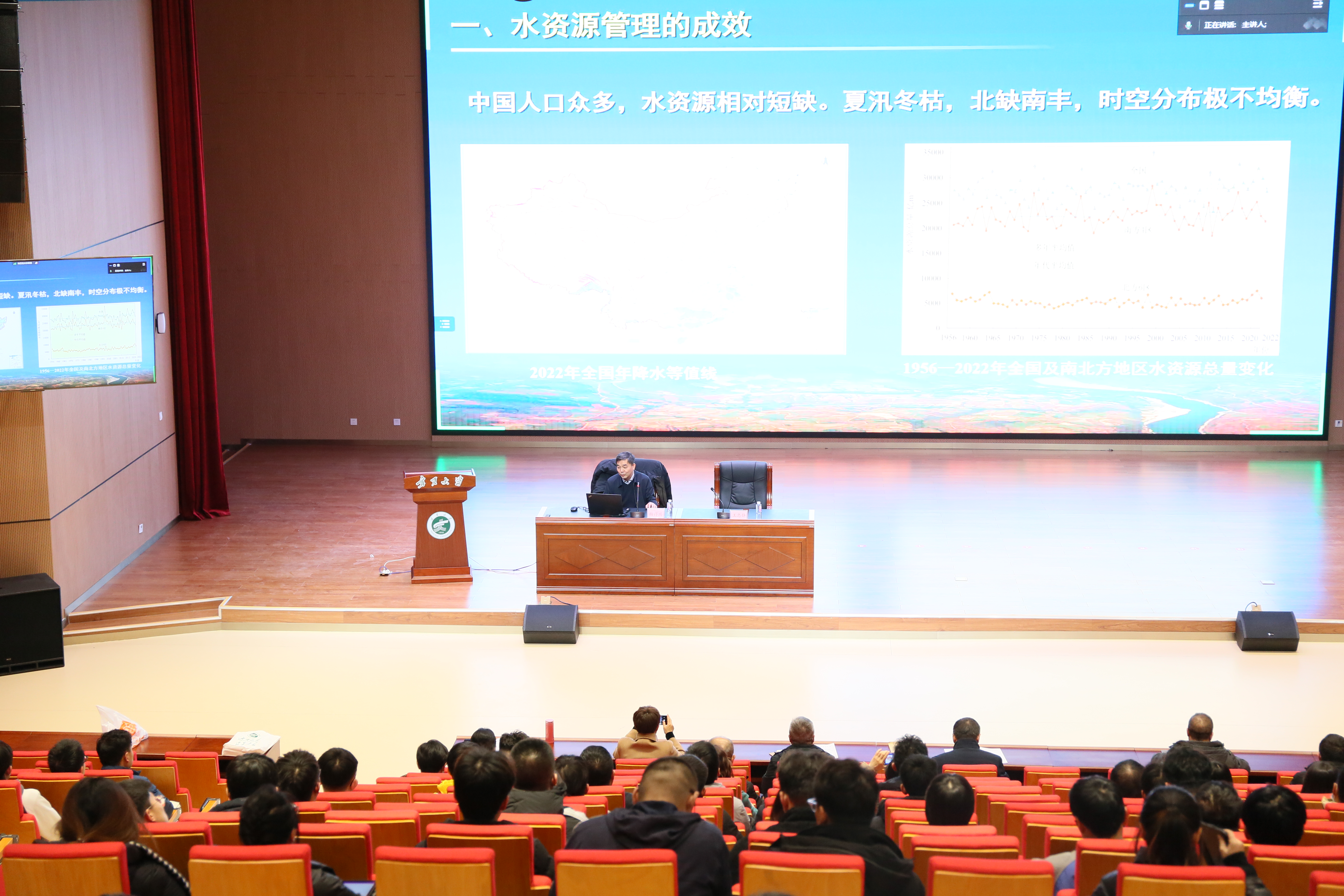师生作“水资源管理的实践与挑战”学术报告。报告会由校党委常委、副校长王忠静主持,线上线下同步的方式进行,宁夏水利行业相关专业人士、AG亚游官网