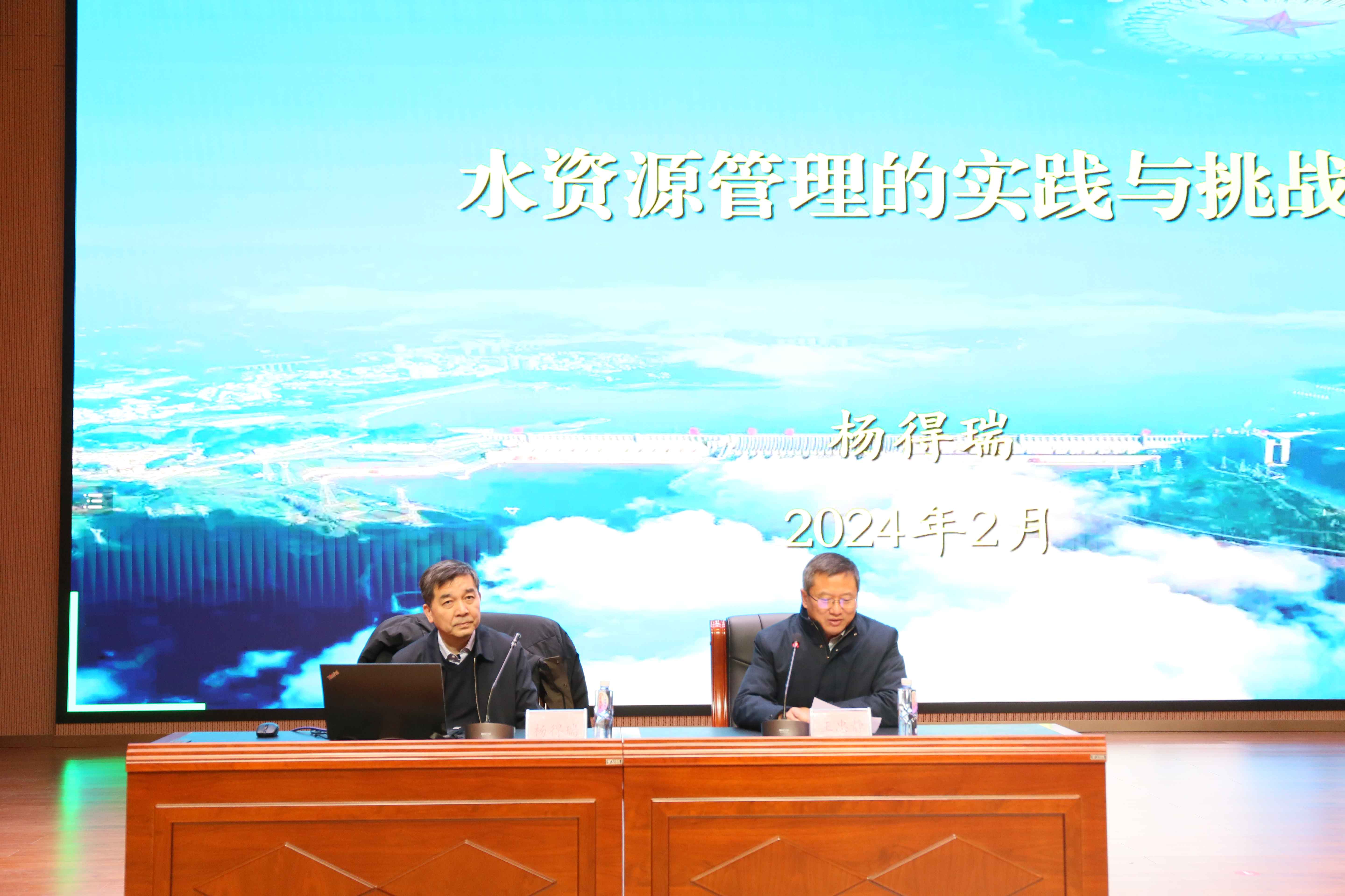 杨得瑞教授从水资源管理成效、水资源管理做法、水资源管理挑战、水资源管理展望四个方面对我国水资源管理现状进行了全面阐述。在讲座过程中,强调了在人口不断增长、经济快速发展、工业化城镇化快速推进的进程当中,保障供水安全并维系良好生态,平衡好经济社会发展用水和生态环境用水的意义;从强化水资源刚性约束、从严从细管好水资源、复苏河湖生态环境三个方面概括了我国水资源管理的做法;从有多少水、能用多少水、用了多少水、用的好不好四个方面分析了我国水资源管理存在的挑战;最终从提高供水质量和可靠性、保障河湖生态环境用水、推进实现地下水采补平衡三方面对我国水资源管理的进行了展望。
