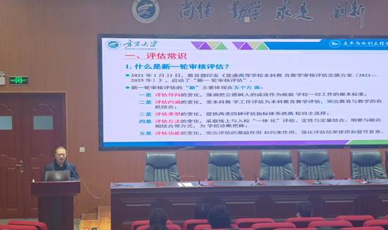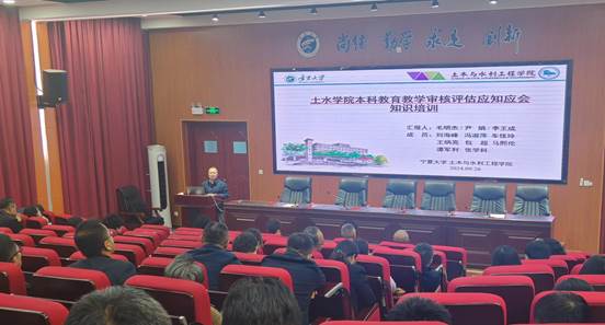 于全院教职工大会上,开展了本科教育教学审核评估应知应会知识培训。党总支书记尹娟、院长毛明杰、副书记冯淑萍、副院长刘海峰、李王成、院党委委员车佳玲、及AG亚游官网