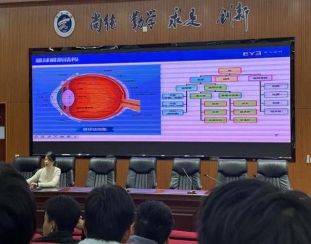 会上,道桥系党支部书记许鹏阐述本次讲座的重要性并介绍了夏明芳医师的个人简介。活动伊始,夏医师首先介绍了眼球的解剖结构,帮助学生了解眼球的重要组成部分及其基本功能。讲解内容生动直观,让学生认识到眼球健康的重要性。接着,夏医生结合大学生日常常见的眼部问题展开分析,例如视力模糊、眼干、眼红、眼胀以及长期佩戴隐形眼镜引起的不适等。通过实际案例分析和数据说明,强调了不当用眼的危害性。