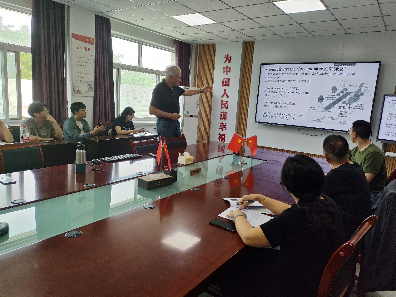 师生与G. MathiasKondolf教授对于在拓宽河流廊道过程中涉及到的生态水文专业问题展开了讨论,认为这一问题在拓宽河流廊道实施过程中至关重要。报告会拓宽了师生视野,为干旱区流域综合治理提供了新的思路。
