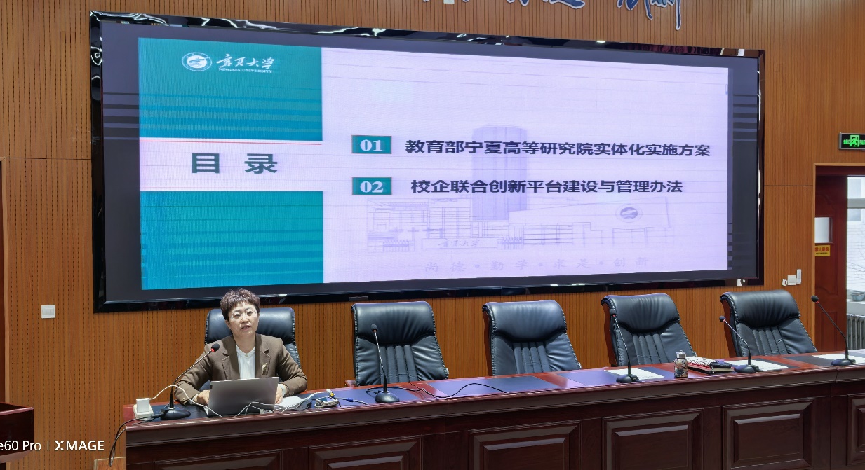 尹娟结合宁夏大学现状围绕宁夏高等研究院的战略定位、核心政策与发展蓝图进行全面宣讲。宁夏高等研究院作为全国首个部区共建、以省区命名的高等研究院,是推动教育、科技、人才、产业深度融合的重要创新平台,对我校抢抓发展机遇、优化学科布局、提升科研与育人水平具有重大意义。全体教职工要提高政治站位,深刻认识高等研究院���设的战略价值,精准把握政策导向,主动对接平台资源,将个人发展、团队建设与学校事业发展紧密结合,积极投身高层次人才培养、高水平科研攻关与高质量成果转化工作。