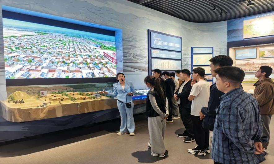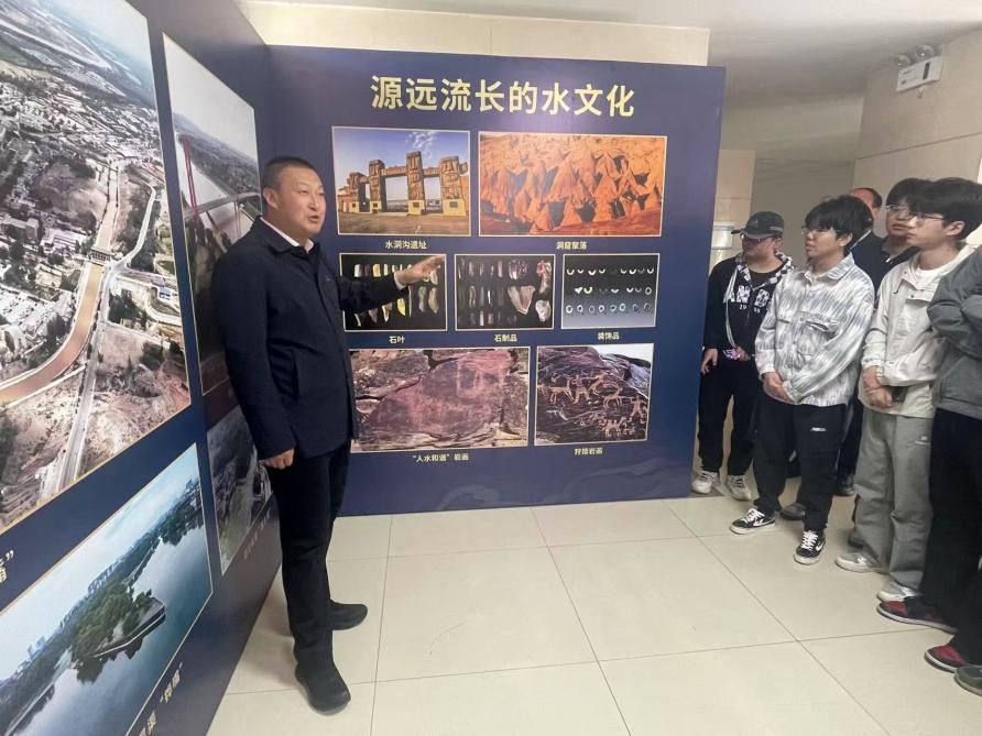 在黄河宁夏���界灌溉工程遗产展示中心讲解员以时间为轴,从秦汉古渠开凿讲到现代智慧灌区建设,从传统渠系布局讲到当代水利工程创新,通过历史文献、实物展品、工程模型、影像资料,让同学们沉浸式感受“天下黄河富宁夏”的水利根基,深刻理解宁夏引黄古灌区作为世界灌溉工程遗产的历史价值与时代意义。作为黄河水利文化传承、灌溉遗产价值传播的核心载体,该中心全景呈现宁夏引黄灌溉两千余年发展脉络、工程技艺与历史成就。