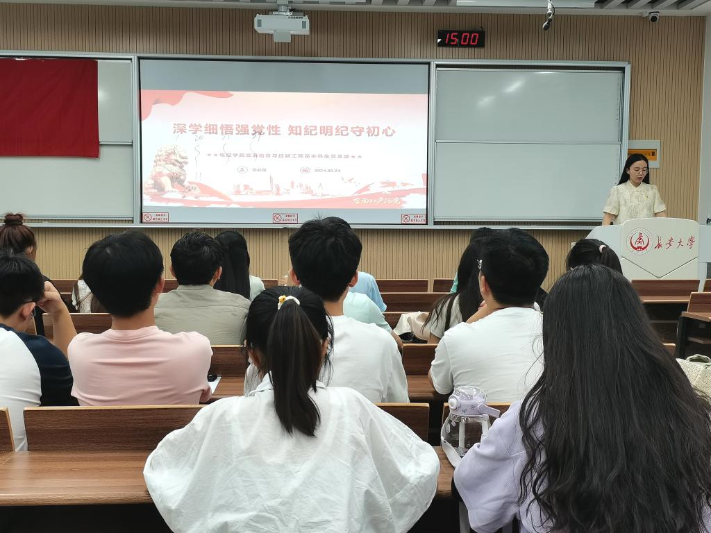交控系本科生党支部于6月24日下午在WX2101教室和校史馆开展了“学党纪 忆校史 强党性”主题党日活动。活动由支部副书记李慧主持,支部书记许必颖及22名党员参加。