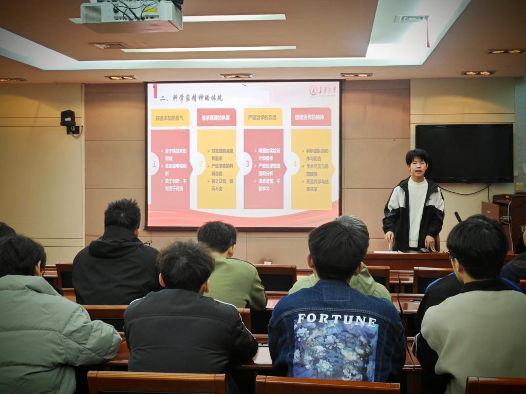 2024级研究生第一党支部于11月15日下午在南校区北院交流中心第一会议室开展“弘扬科学家精神,争做新时代追梦人”主题党日活动。研究生辅导员王佩佩及全体党员参加活动,活动由党支部书记张兴浩主持。