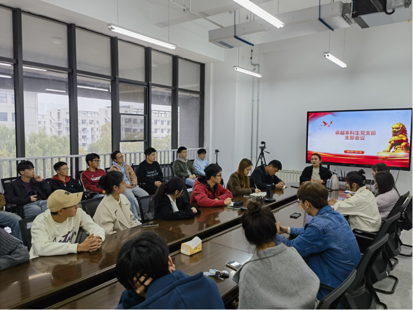 党委副书记高婷婷,卓越本科生党支部书记张馨月、党支部副书记刘平利及全体学生党员参会。