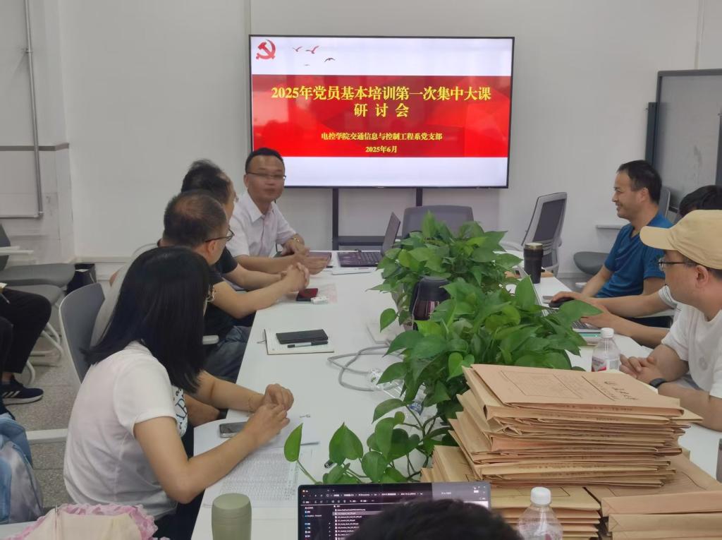 党员基本培训集中大课成效,交通信息与控制工程系党支部6月23日下午在工程训练中心三楼会议室召开了2025年党员基本培训第一次集中大课研讨会。会议由代亮教授主持,全体党支部教师党员参加了此次会议。