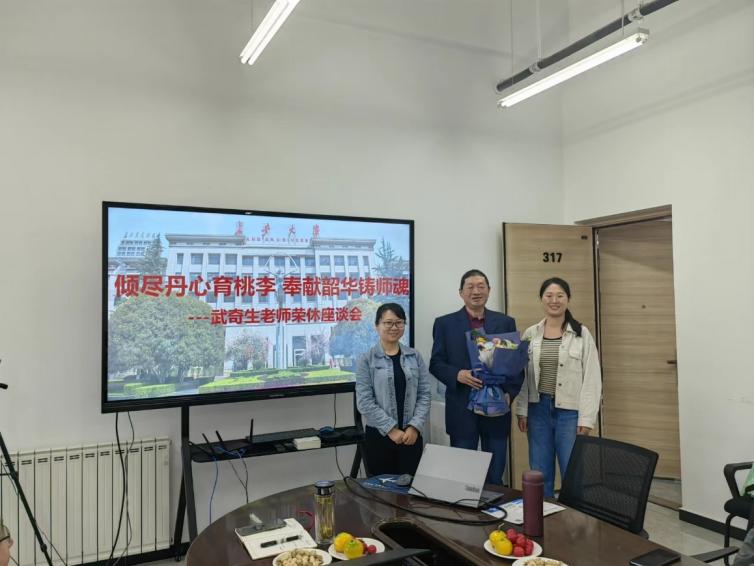 专业建设、学科发展以及人才培养等方面所付出的辛勤努力以及做出的巨大贡献给予高度评价和衷心感谢,祝福武老师在未来的日子里身体健康,生活愉快。现场教师代表向武老师赠送了献花。