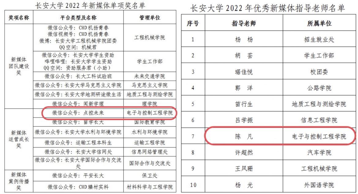 党委发布《关于表彰长安大学2022年优秀校园新媒体平台及优秀新媒体指导老师的决定》(长大党宣〔2023〕9号),AG亚游官网