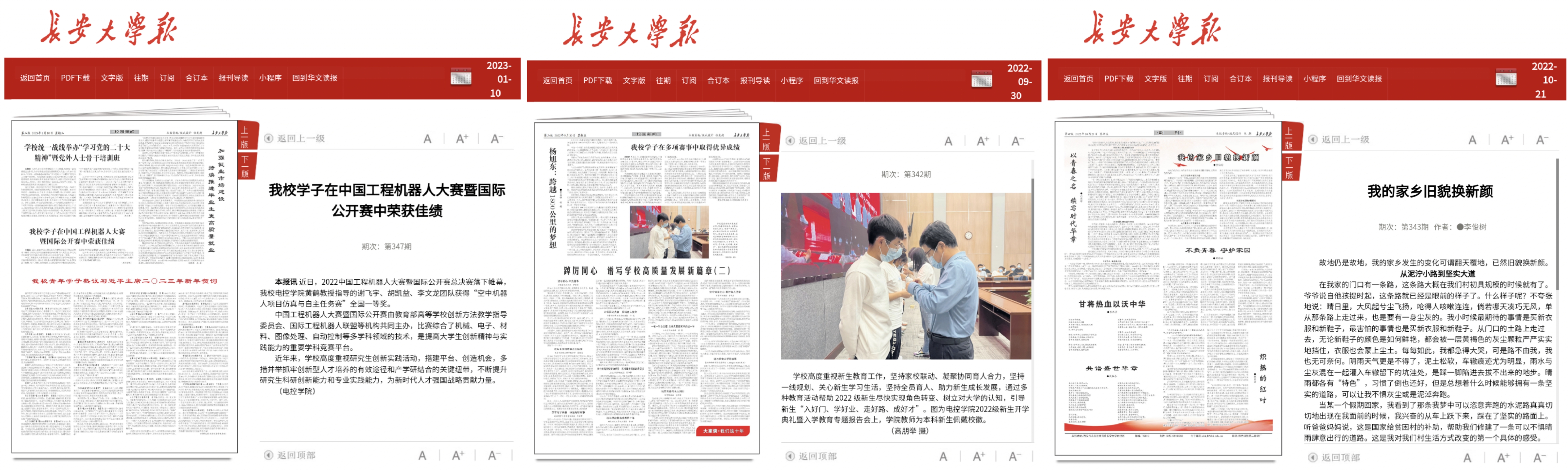 新媒体宣传工作聚焦立德树人根本任务,构建线上线下一体化宣传体系,形成“内外互动、纵横联动”的宣传格局。2022年度,公众号有100余篇推文被教育部有关网站、主流媒体和《长安大学报》、学工部网站、团委先锋家园网站等转发转载,取得了较为广泛的影响。