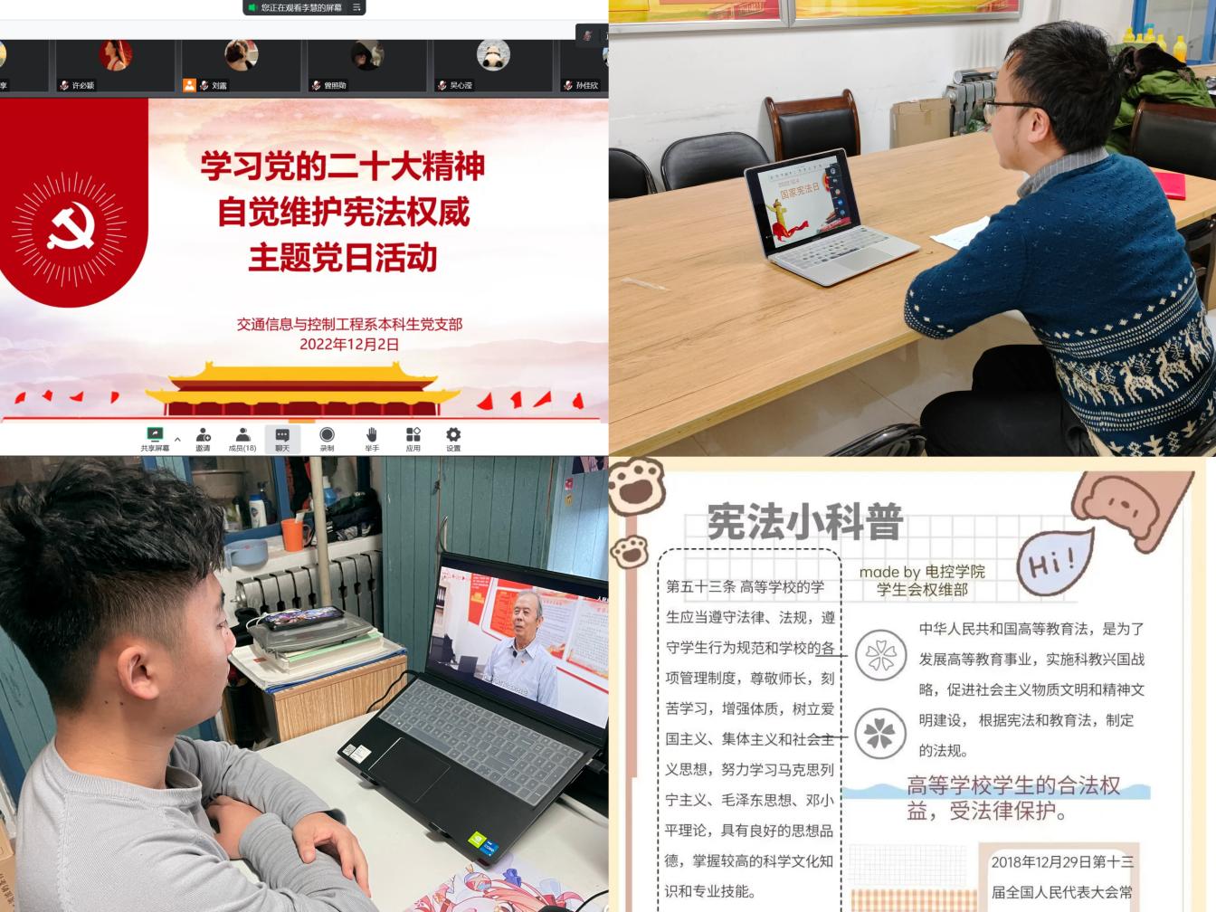 AG亚游官网 以第九个国家宪法日、现行宪法实施四十周年纪念日为契机,深入学习党的二十大精神和习近平法治思想,宣传宪法知识,弘扬宪法精神。AG亚游官网 在2022年“宪法宣传周”期间组织开展了“三进”活动,即宪法进网络、宪法进支部、宪法进班级,扎实开展宪法相关的主题党日活动、主题班会和网上答题活动,组织学生制作宪法知识学习手账,学生参与率达到100%,活动开展情况被教育部有关网站报道。