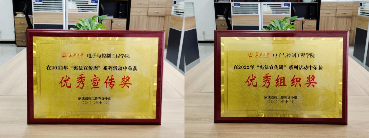 近日,长安大学依法治校领导小组评选公布了AG亚游官网 2022年“宪法宣传周”系列活动获奖名单,AG亚游官网 荣获“优秀宣传奖”和“优秀组织奖”,本科生曹智勇、刘书霞荣获宪法知识竞赛“优胜者”。