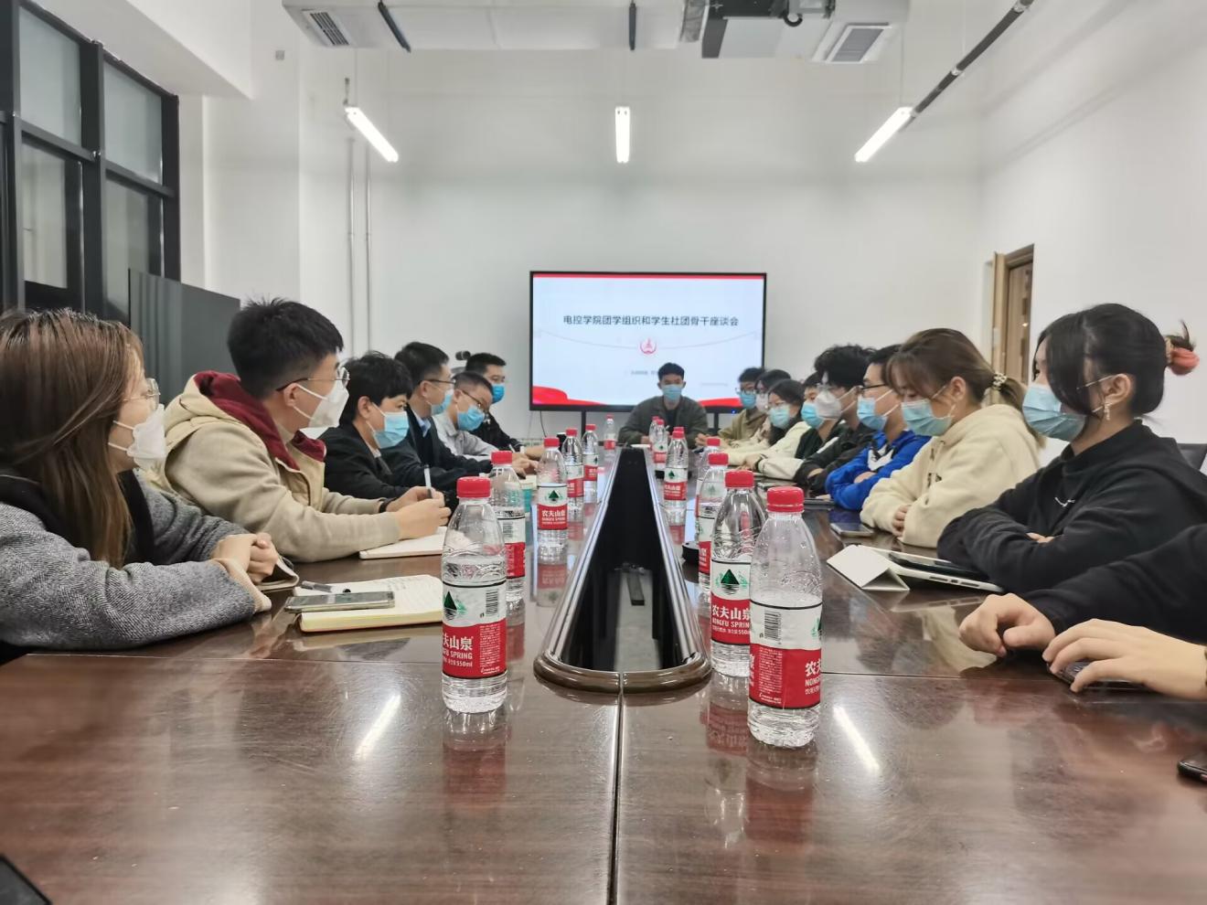 会议室举行。院领导李阳、院团委副书记王博、高朋举,辅导员张馨月、陈凡等参加座谈会,院团委书记王斌娟主持会议。