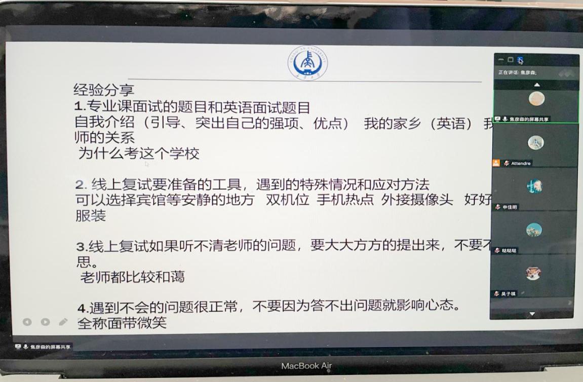 在腾讯会议举办考研复试线上经验交流会,邀请9位优秀的在读硕士研究生为即将参加考研复试的同学做经验介绍。AG亚游官网