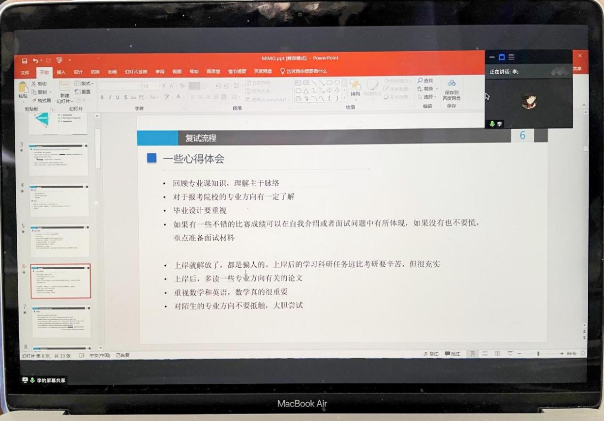 的复试经验。其中,西北工业大学控制科学与工程专业研究生冉汉阳同学针对专业复试科目、英语面试及联系导师等方面的细节做了讲解。