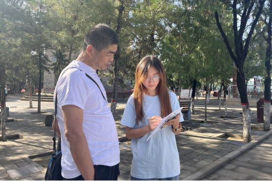 参观结束后,队员们通过分发调查问卷、采访游客等方式,展开红色景点发展现状和红色精神在人们心中留存程度的调研。