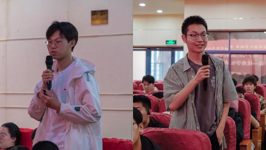 宣讲环节,宣讲团成员曹智勇、胡靖凡、刘敦强、冷怀诚分别围绕课程学习、团学工作、班级建设、科创竞赛等方面进行分享。他们强调了基础课学习的重要性,分享了专业课的有效学习方法、参加科创竞赛的经验体会、如何有效兼顾学习与工作等,激励学弟学妹不畏挑战、勇敢追梦,积极进取、追求卓越。