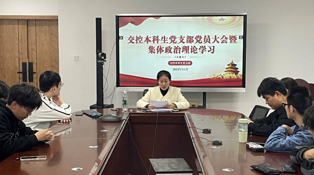 交控本科生党支部于11月14日在朝晖园学生社区党员活动室开展了交控党支部党员大会暨集体政治理论学习活动。会议由党支部书记李慧主持,全体党员参加。
