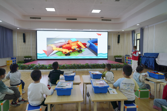 志愿者对上一节课所涉及的零件进行复习。她以清晰、详尽的讲解方式,助力幼儿园的小朋友们进一步巩固对各类零件的认识,深入掌握其结构特点及功能用途。在互动环节中,小朋友们积极参与,现场洋溢着浓厚的学习氛围。