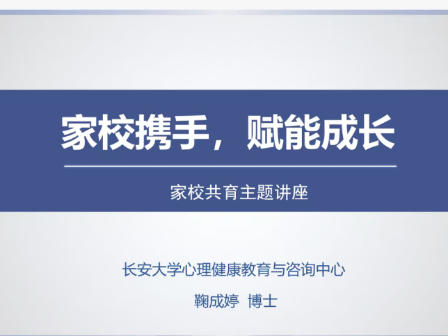 心理中心教师鞠成婷、2022级辅导员李慧及260余名家长相聚云端,会议由李慧主持。