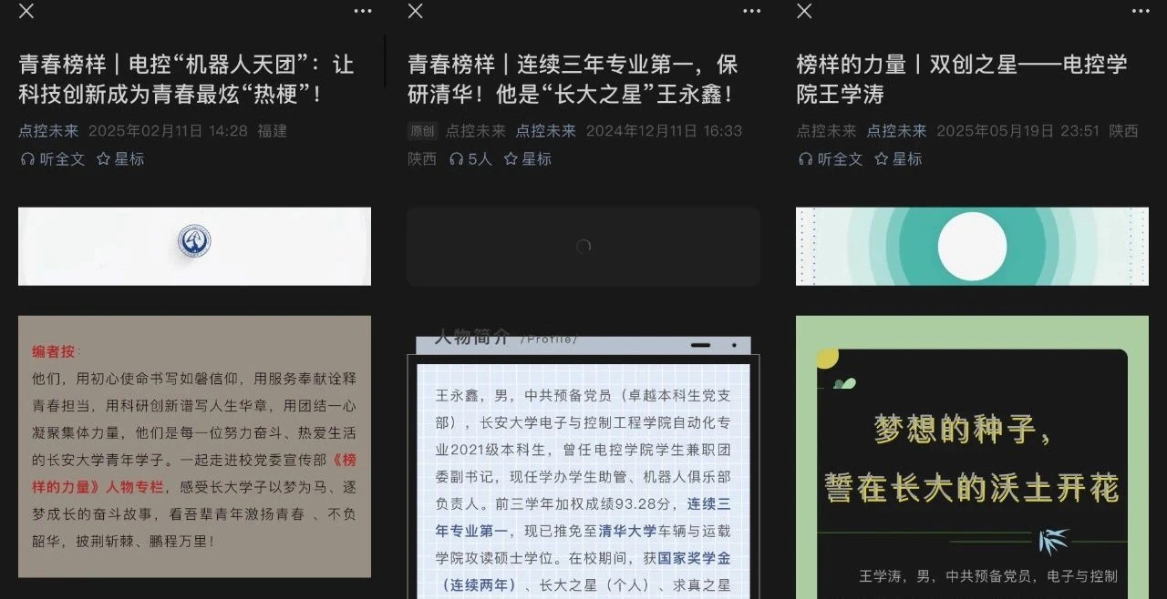 微信公众号平台设立“青榜样”专栏,推出国家奖学金、国家励志奖学金获得者风采展,发挥朋辈示范引领作用,激励学生见贤思齐,以诚信为基、以奋斗为笔,书写属于自己的青春篇章。