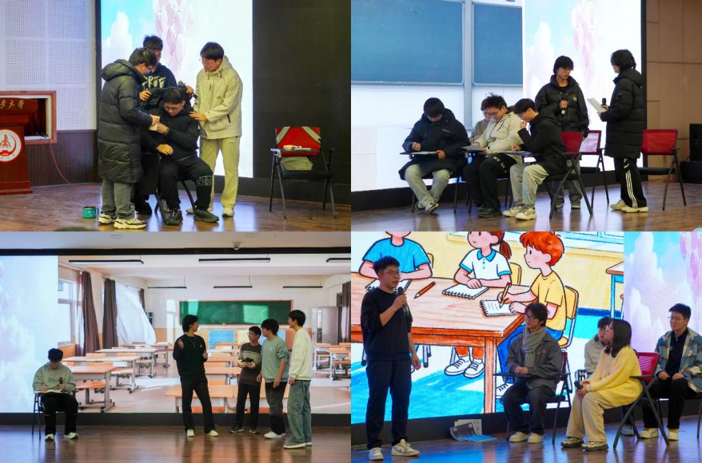 各年级学生的积极响应与广泛参与。决赛中五支队伍聚焦“自我认同”“情绪管理”“人际关系”“学业压力”等大学生常见心理议题,通过自主创作的剧本、贴近生活的角色塑造和真挚细腻的舞台表演,将青春期的迷茫、友谊的温暖、突破自我的勇气等真实体验转化为具有感染力的剧情,实现了心理议题的艺术化表达与情感共鸣。