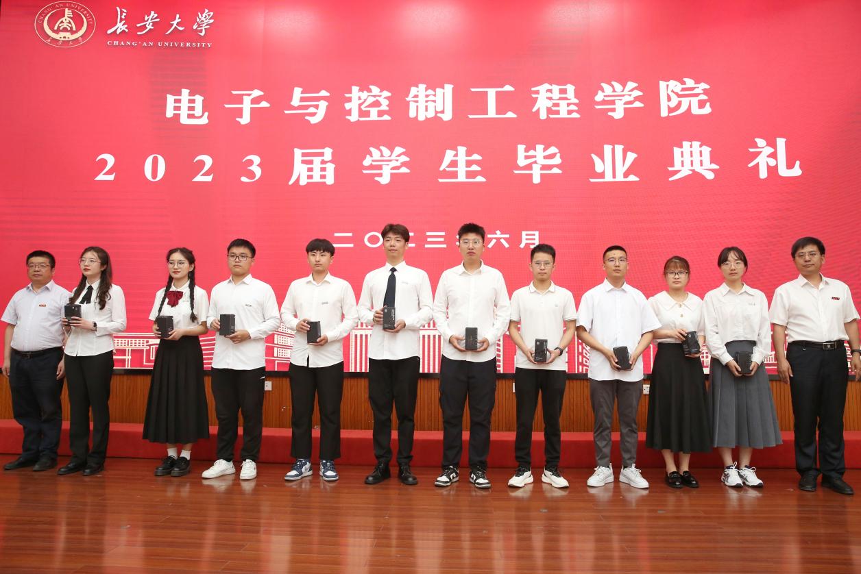 定制的纪念品。院党委副书记、副院长、纪委书记李炬和副院长龚贤武为陕西省优秀毕业生颁发荣誉证书,副院长路庆昌、副院长惠飞为长安大学优秀毕业生代表颁发荣誉证书。