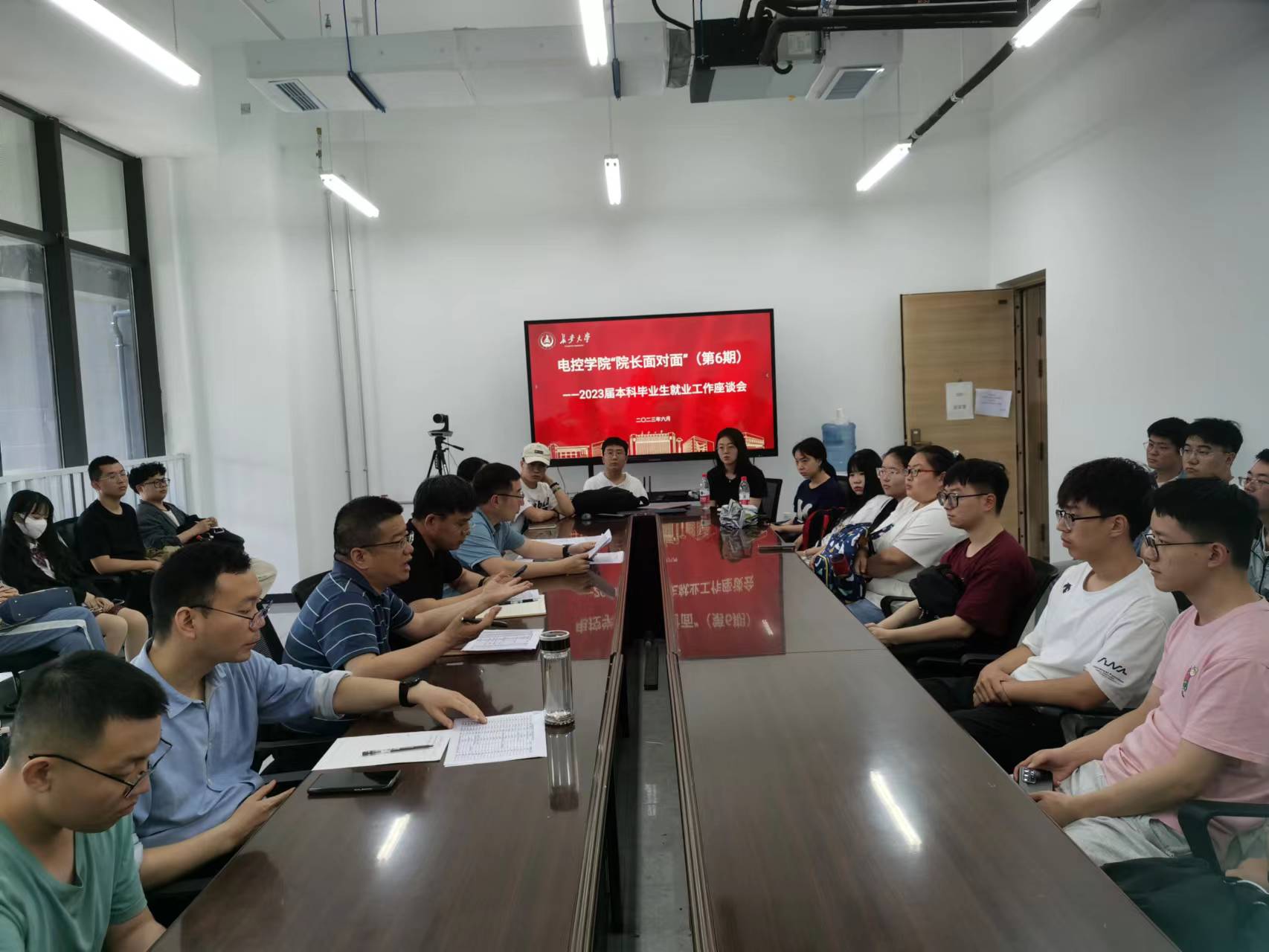会议室举行“院长面对面”(第6期)之2023届本科毕业生就业促进工作座谈会。院党委书记贺炳彦、院长闫茂德、院党委副书记李阳、自动化系副主任杨盼盼、毕业班辅导员王斌娟出席座谈会,31名2023届未就业毕业生代表参加座谈会。