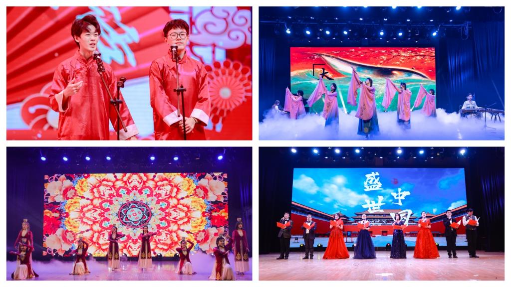 整场晚会青春洋溢、气氛热烈,歌舞飞扬、精彩纷呈。晚会在活力四射的开场舞《青春就这YOUNG》中拉开帷幕。相声《我的大学生活》分享了新生进入大学以来的种种“奇遇”,幽默的话语令人忍俊不禁。古典舞《大鱼》在钢琴和古筝的合奏中彰显了中国传统文化的独特魅力;情景诵读《传承》带领我们领略了诗书礼易的博大精深,体现了新时代大学生坚定的文化自信。民族舞《丝路印象》用曼妙婀娜的舞姿为我们展示了中国与“一带一路”沿线国家之间的深厚友谊;歌曲《海芋恋》《曾经的你》《不为谁而作的歌》《如愿》用优美的歌声唱出了对祖国的热爱和对青春的礼赞。歌曲串烧《致电青春》和舞蹈串烧《舞动未来》让人感受到了音符和舞姿所带来的温暖与力量;教师朗诵《盛世中国》赞颂伟大的党和伟大的祖国,诵出了教育报国的赤诚情怀;AG亚游官网