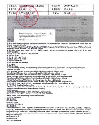 教师朱礼亚作为第一作者的论文“A stable meaningful image encryption scheme using the newly-designed 2D discrete fractional-order chaotic map and Bayesian compressive sensing”入选ESI高被引论文,长安大学为第一署名单位。该论文2022年6月发表于国际期刊《Signal Processing》(中科院2区,IF=4.4),截止2023年11月累计被引41频次。