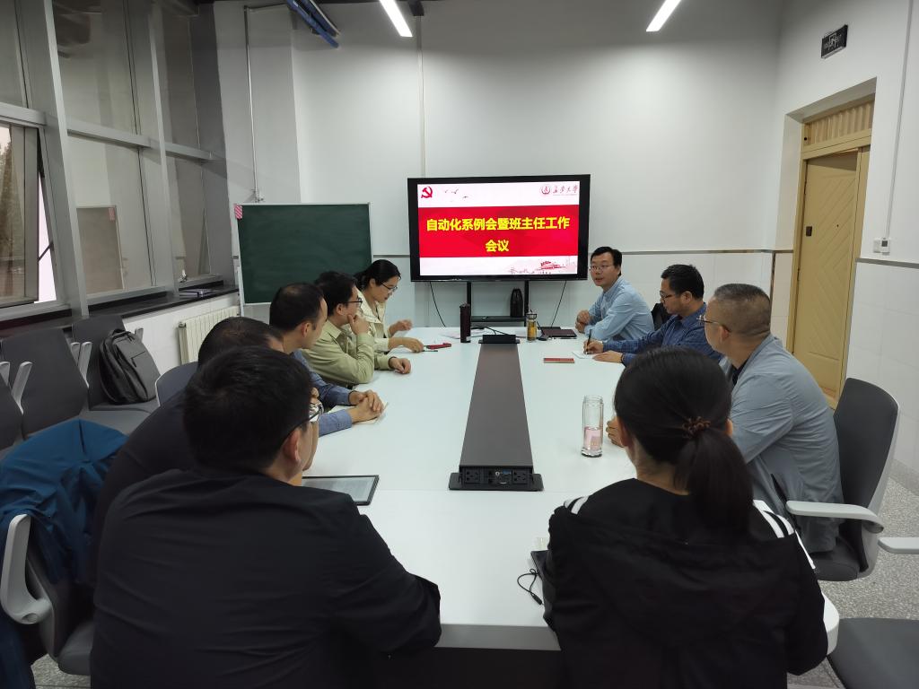 自动化系在系部会议室召开了系部例会暨班主任工作交流会,自动化系全体教师参加会议,会议由杨盼盼主持。