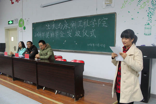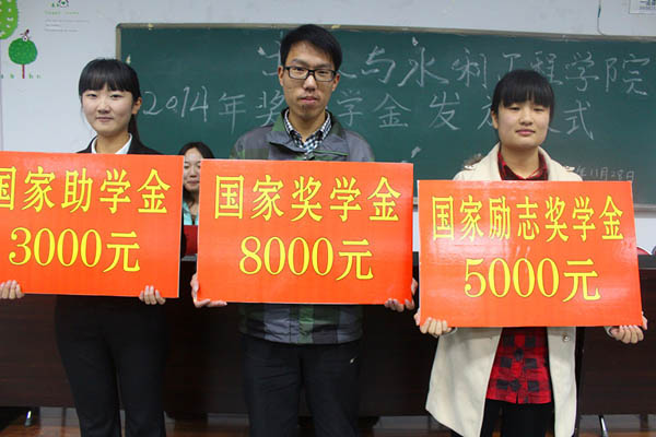 2014年度国家奖助学金发放仪式在工科楼第三阶梯教室举行。AG亚游官网