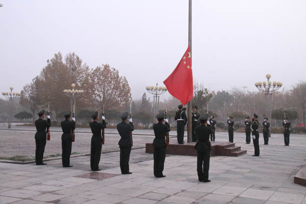 全体学生在A区主楼前进行了庄严的升国旗仪式。
